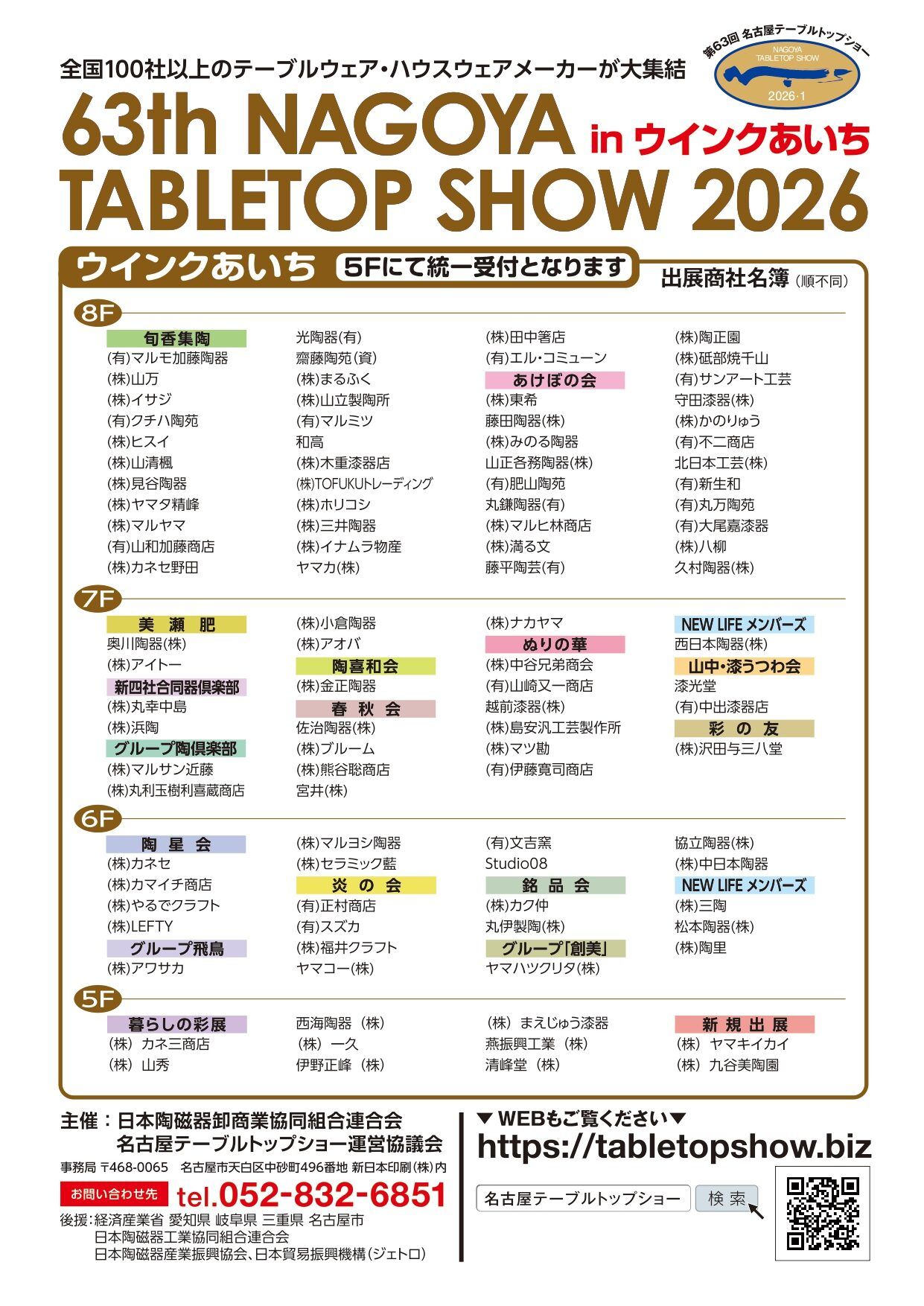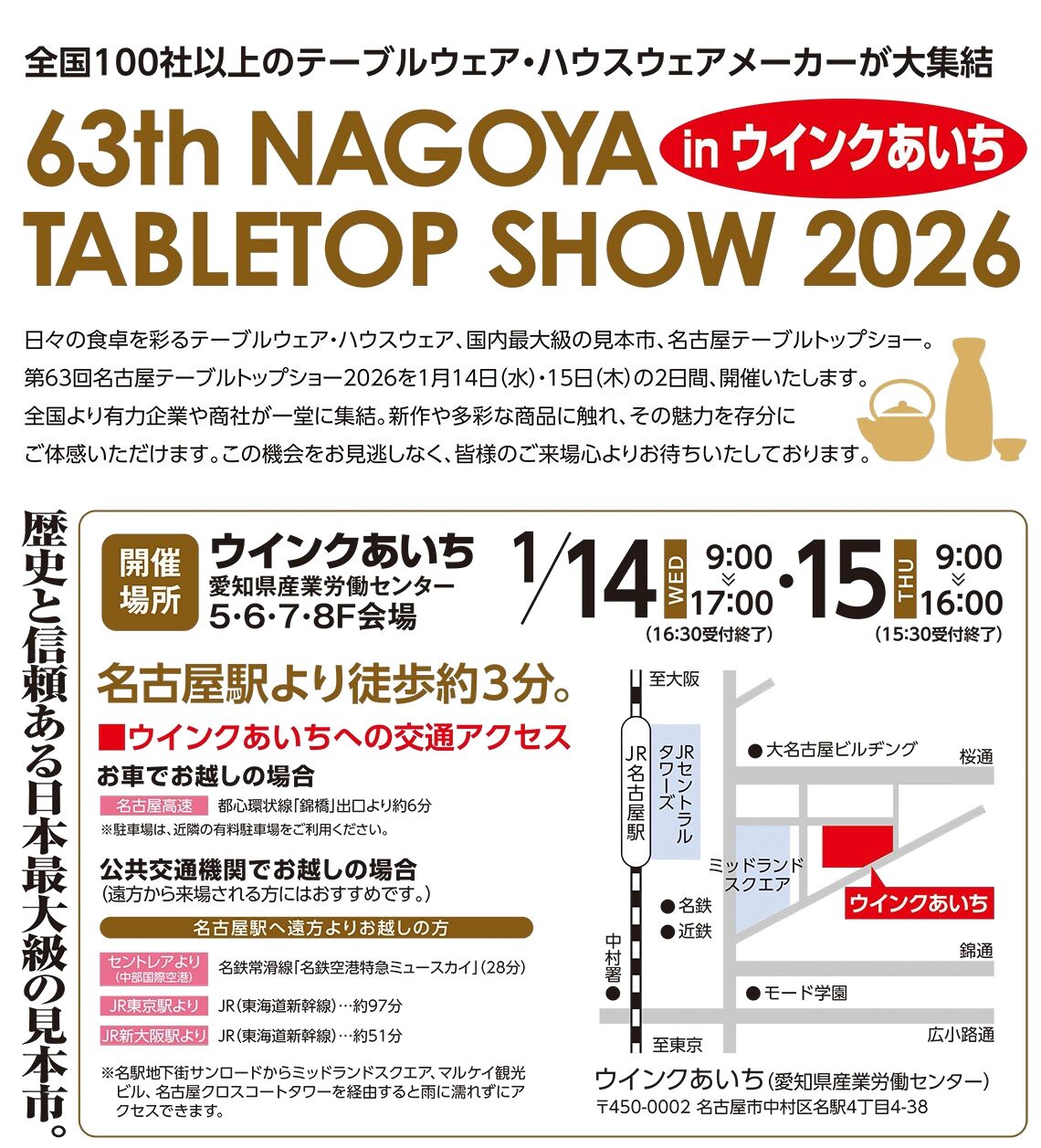 1/14(水)・15(木)『第63回 名古屋テーブルトップショー2026』に出展いたします。
